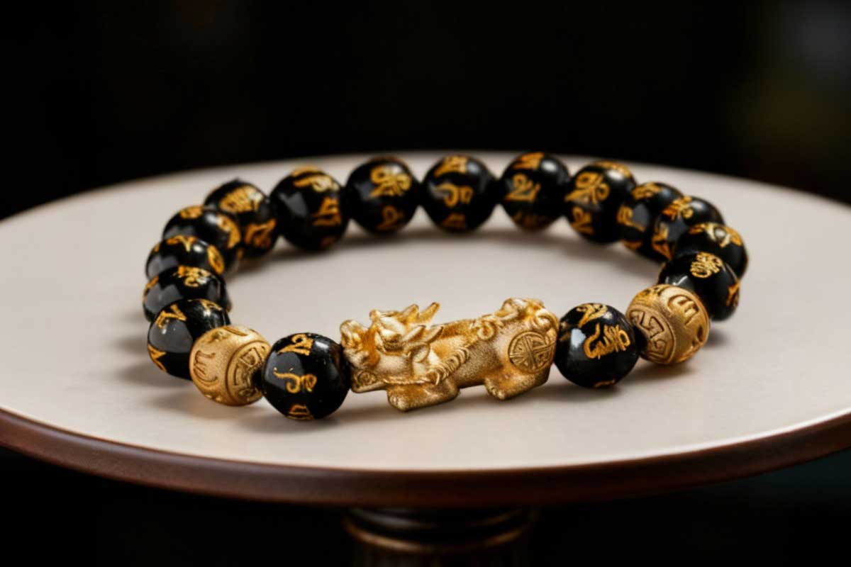 with a small golden Pixiu figure at its center.